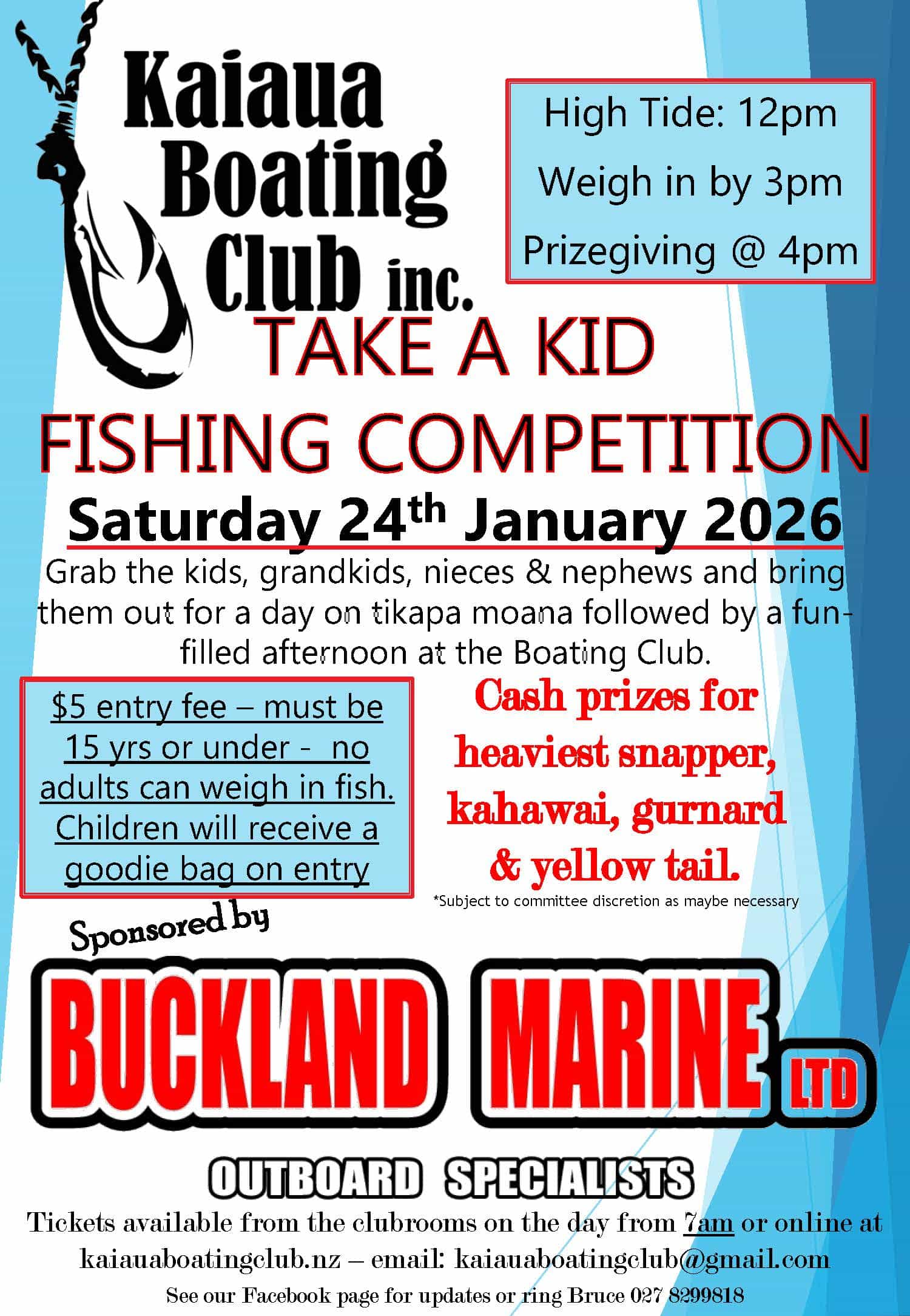 | 24 January 2026 | 12.00pm | Buckland Marine - Take a Kid Fishing | 3pm | 4pm |